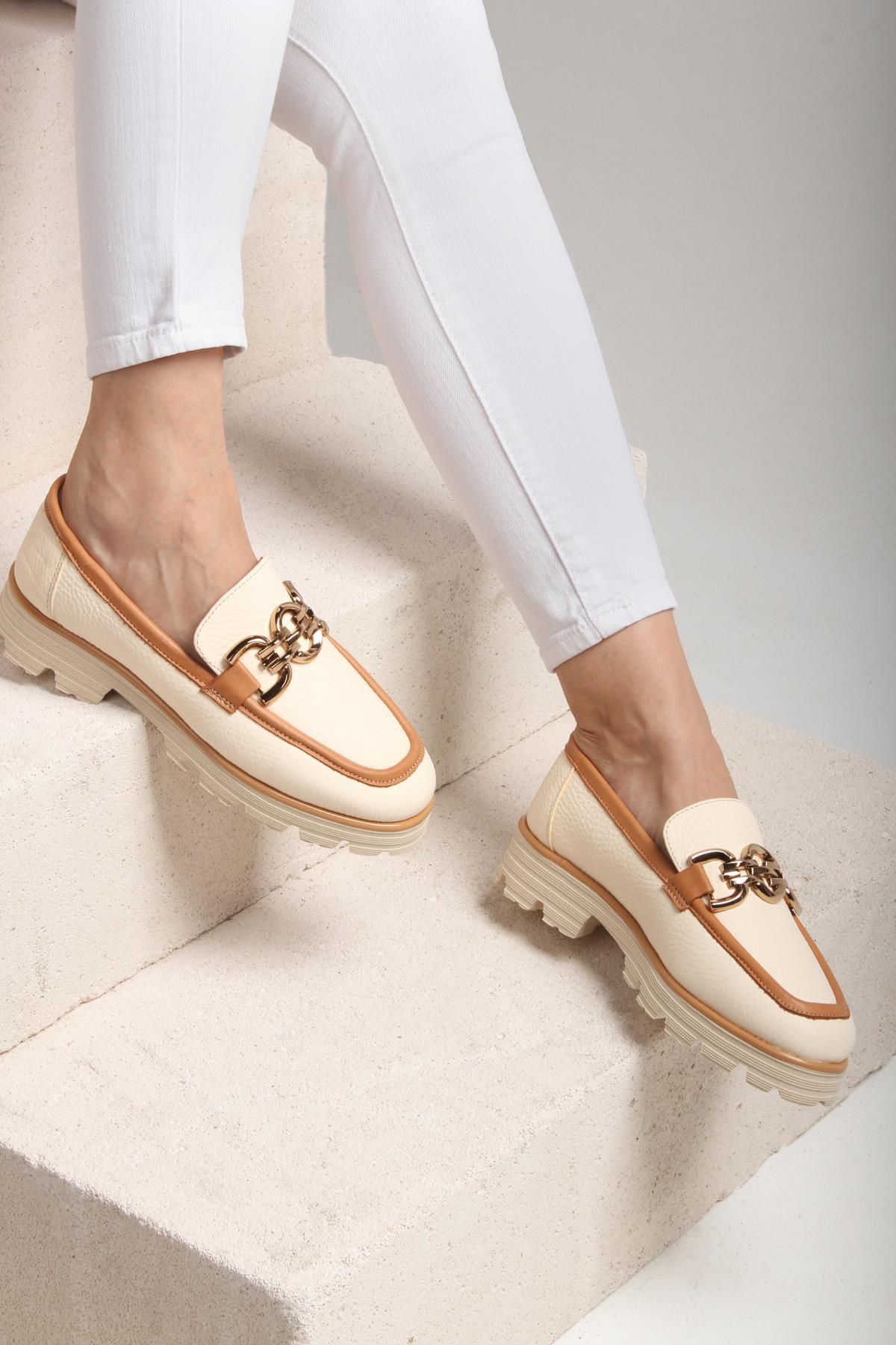 Majensia 141209 Tokalı Loafer Hakiki Deri Bej Flotur