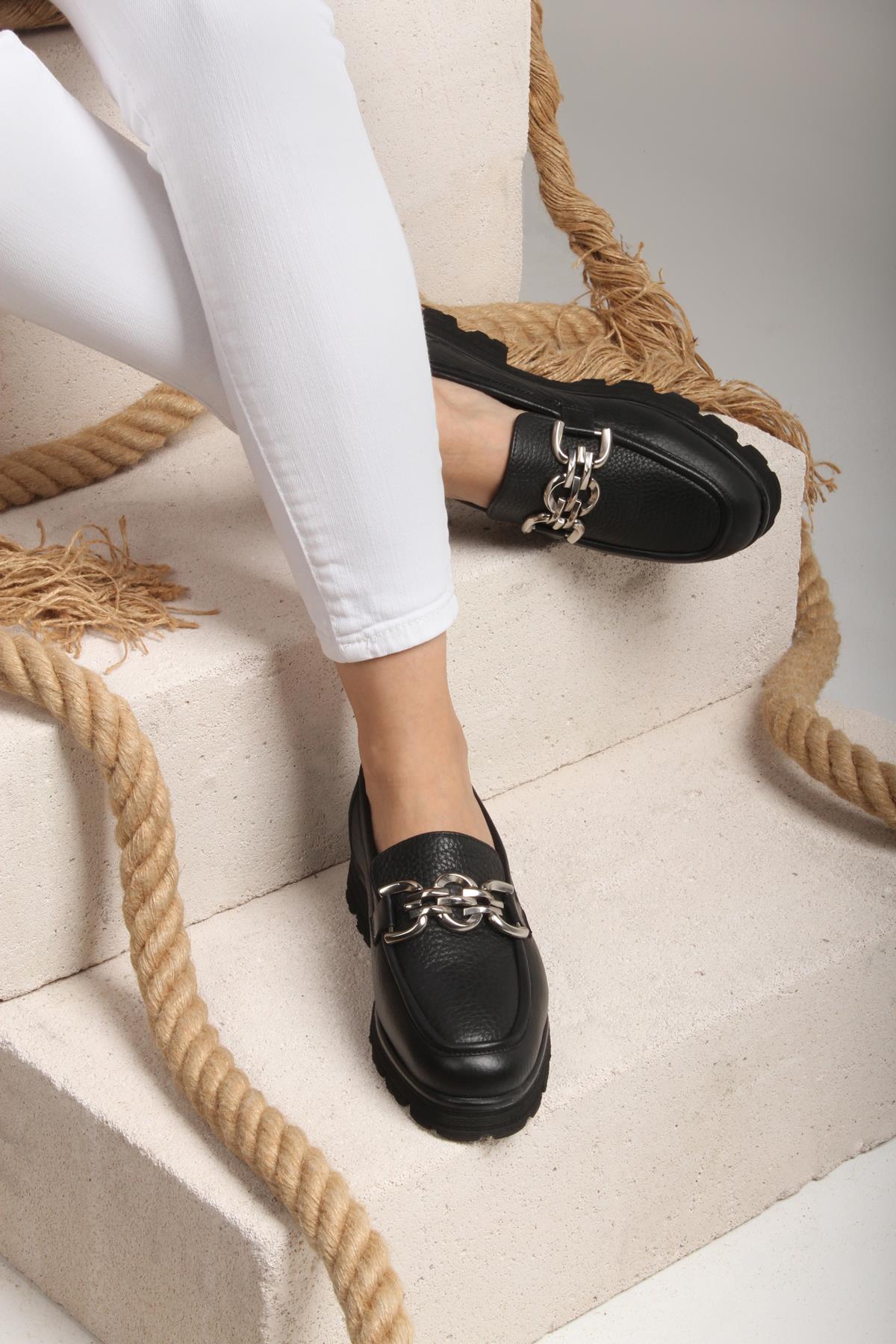Majensia 141209 Tokalı Loafer Hakiki Deri Siyah Flotur