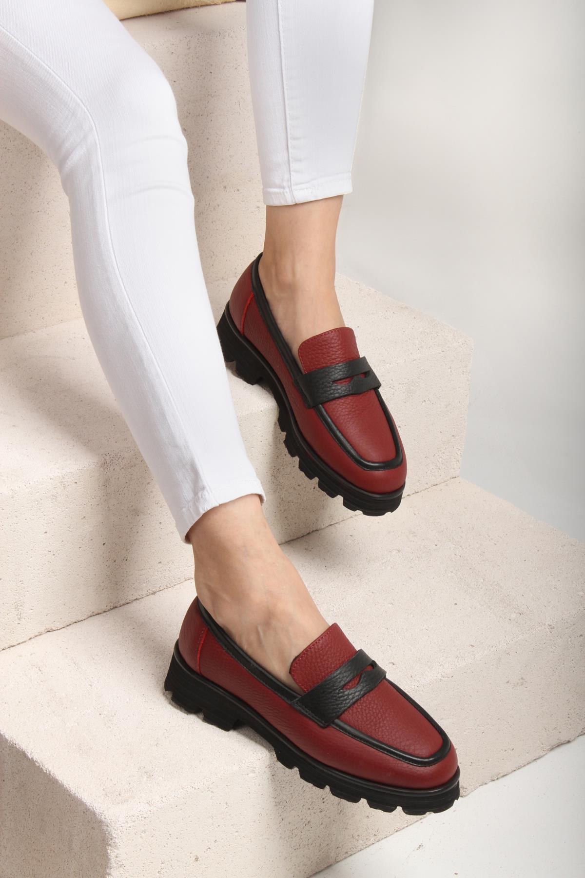 Majensia 141212 Şık Günlük Loafer Hakiki Deri Bordo Flotur