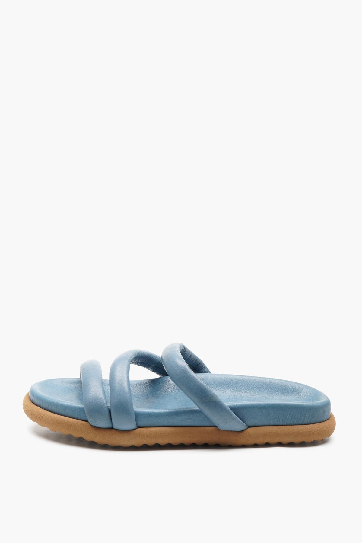 Majensia 141745 Çapraz Bantlı Günlük Terlik Hakiki Deri Kot Mavi