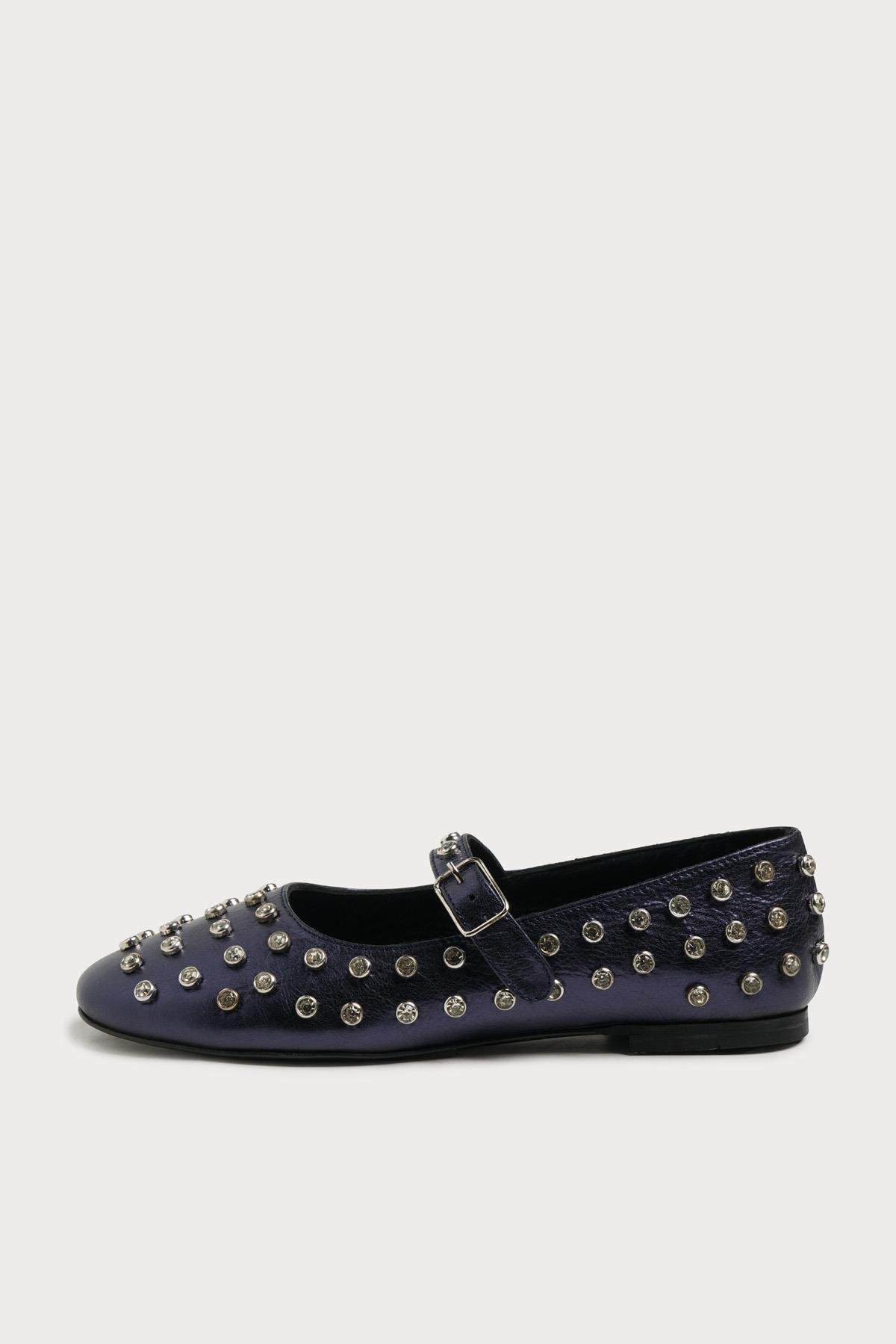 Majensia 151228 Taş Detaylı Babet Hakiki Deri Lacivert