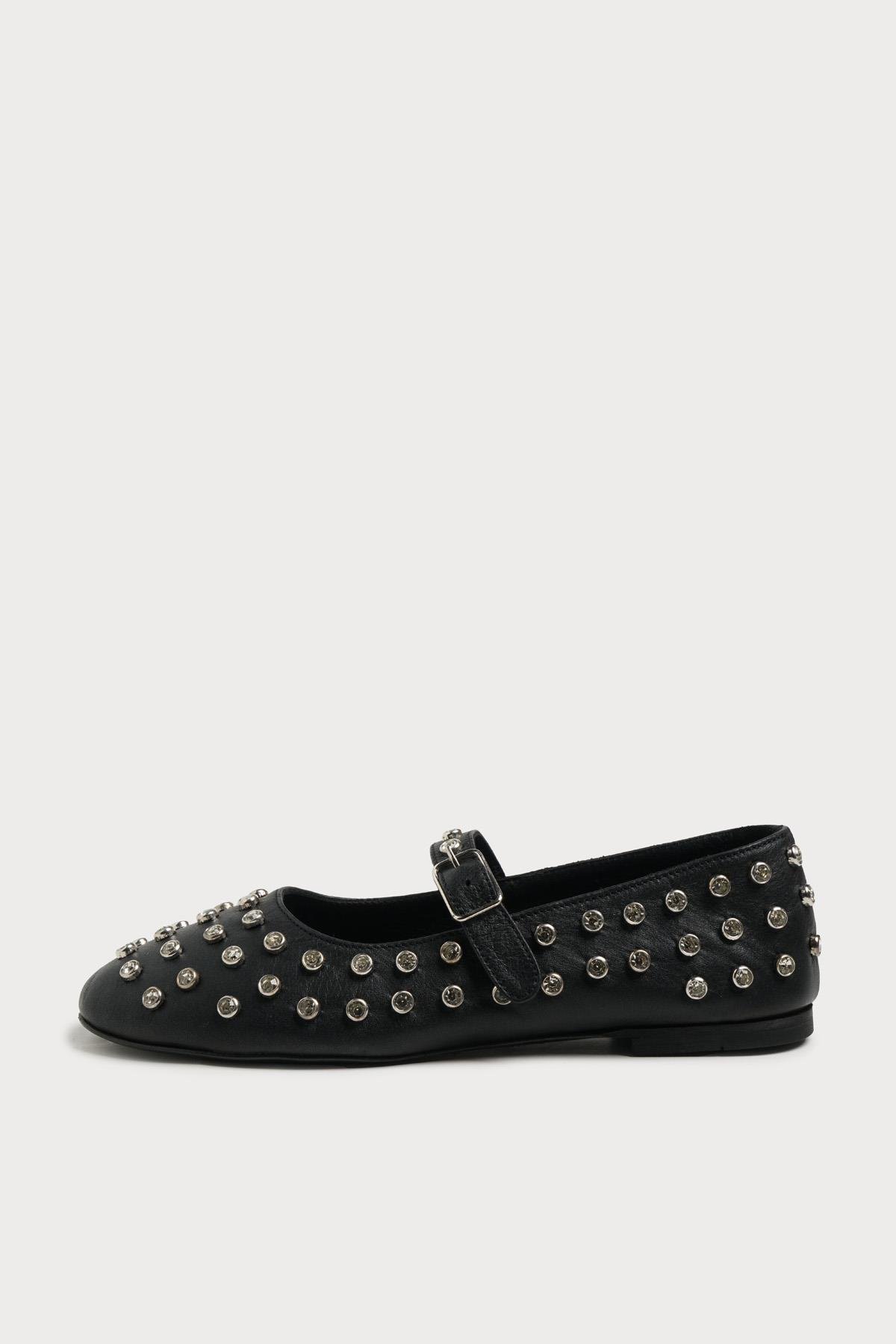 Majensia 151228 Taş Detaylı Babet Hakiki Deri Siyah