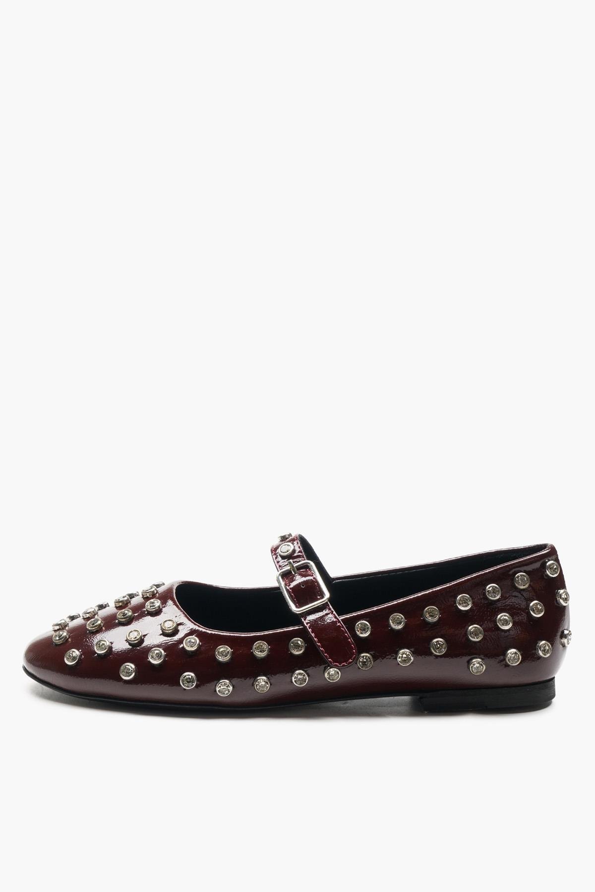 Majensia 151228 Taş Detaylı Babet Hakiki Deri Bordo Rugan