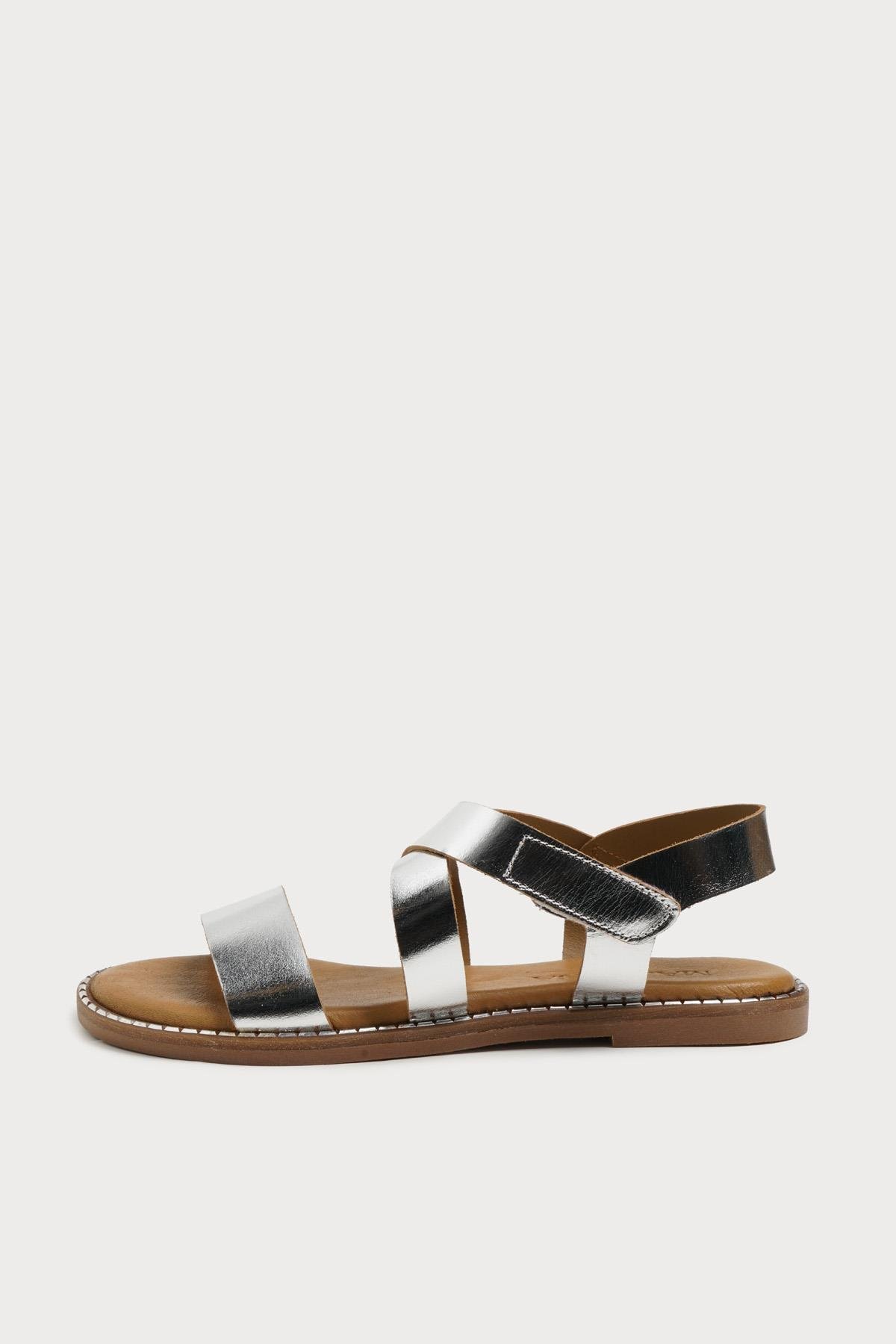 Majensia 151310 Şık Kadın Deri Sandalet - GÜMÜŞ DERİ