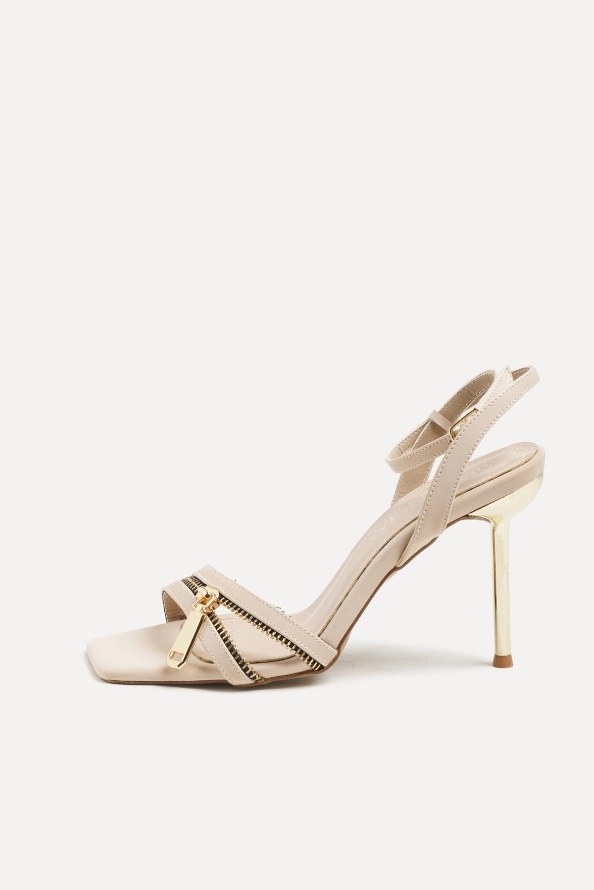 Majensia 155200 Fermuar Detaylı İnce Topuklu Ayakkabı Bej Vagum