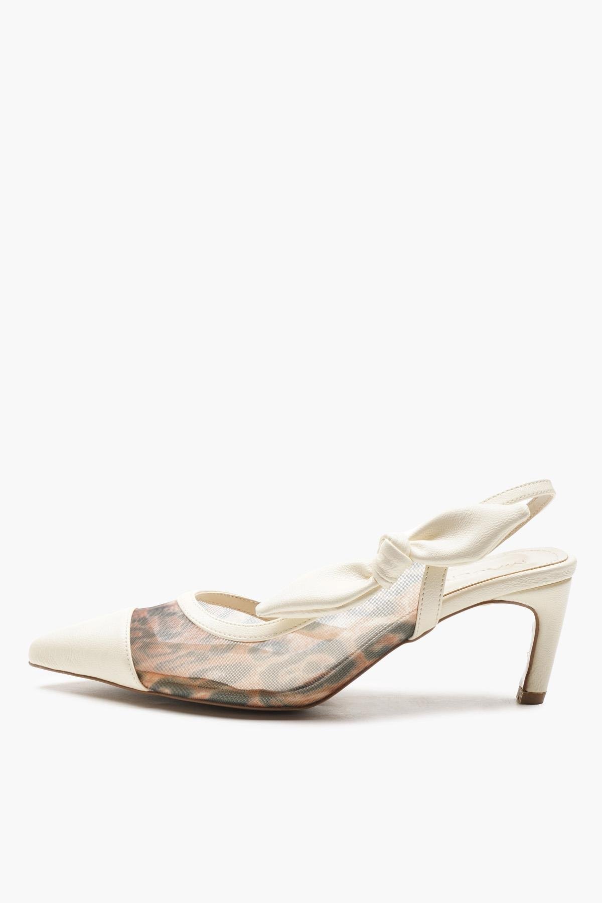 Majensia 155214 Leopar Desenli Fiyonk Detaylı Topuklu Ayakkabı Ekru Deri/Leopar