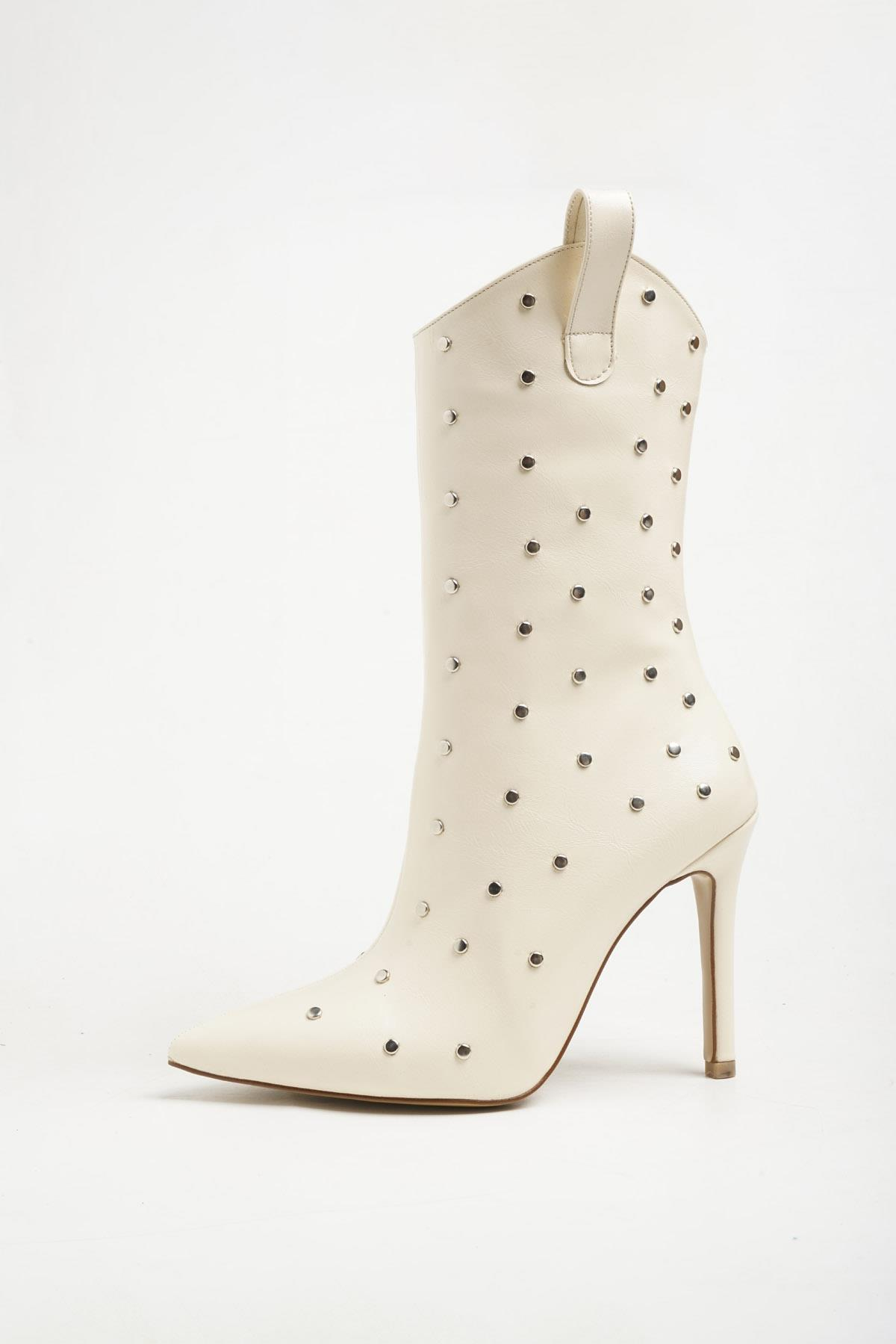 Majensia 251412 Taş Detaylı Topuklu Bot Bej Kırışık Rugan