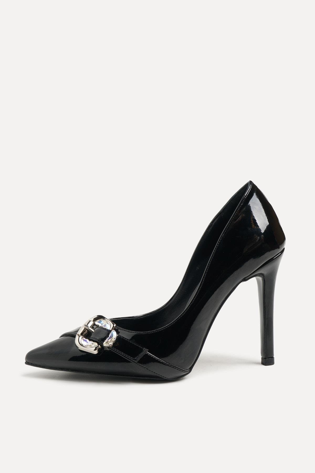 Majensia 255012 Şık Tokalı Topuklu Ayakkabı Siyah Rugan