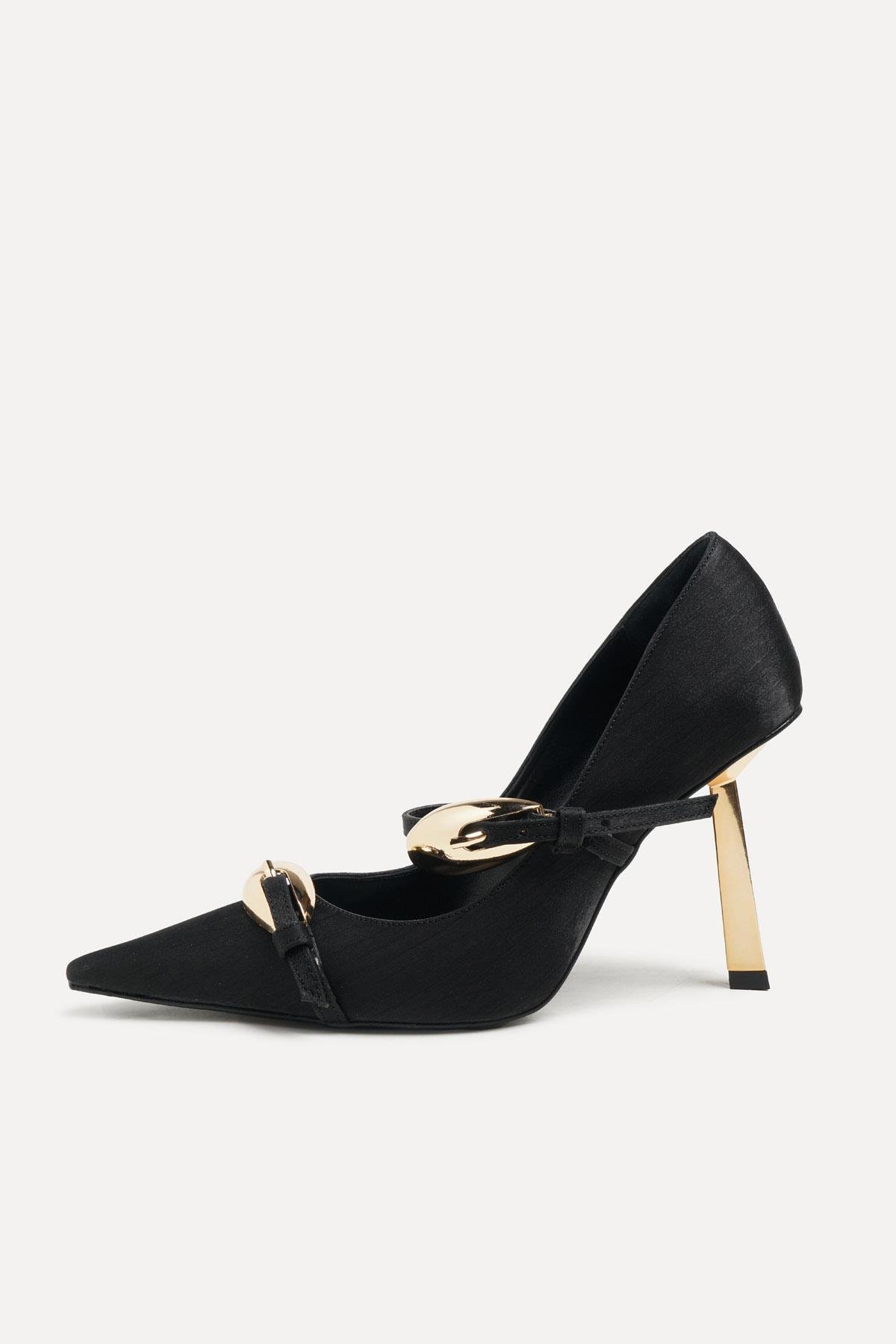 Majensia 255015 Metal Tokalı Stiletto Siyah Saten