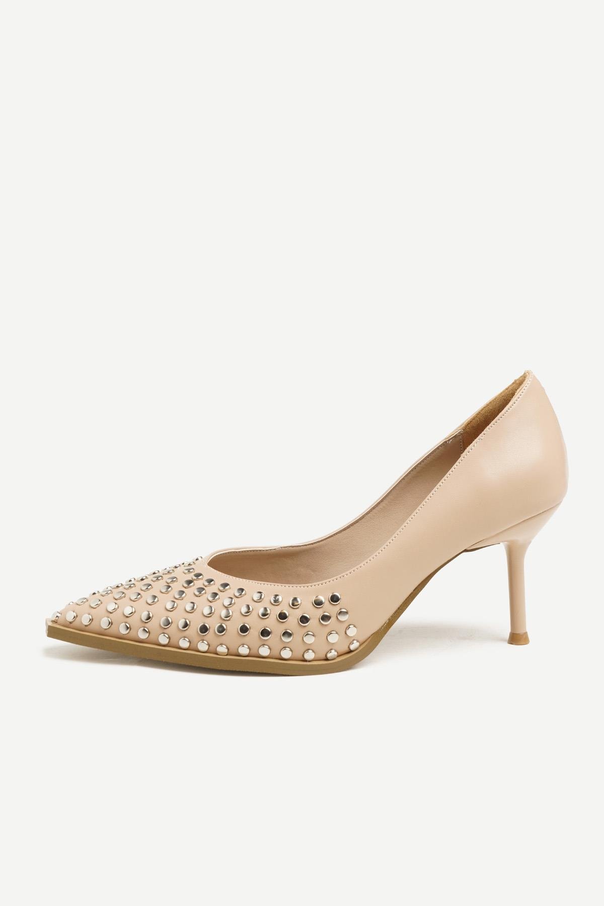 Majensia 255018 Taşlı Topuklu Ayakkabı Bej Deri
