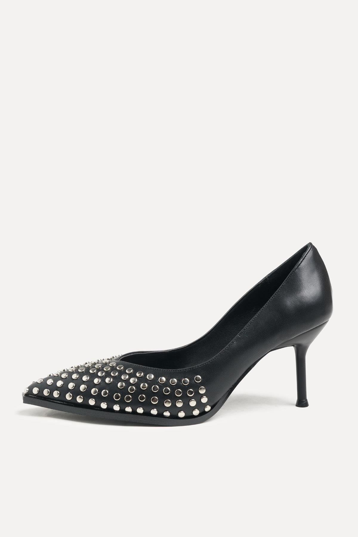 Majensia 255018 Taşlı Topuklu Ayakkabı Siyah Deri