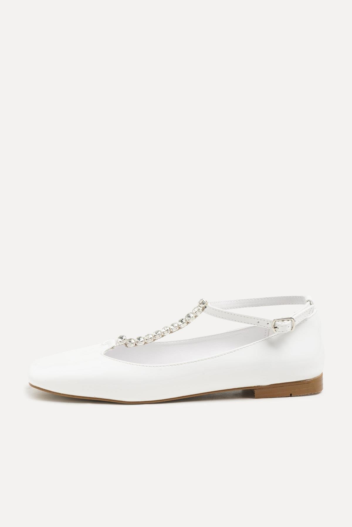 Majensia 255020 Beyaz Rugan Babet, taş detaylarıyla zarif bir ışıltı katar. Hafif ve rahat yapısıyla gün boyu konfor sağlar, günlük ve şık kombinlere uyumludur.